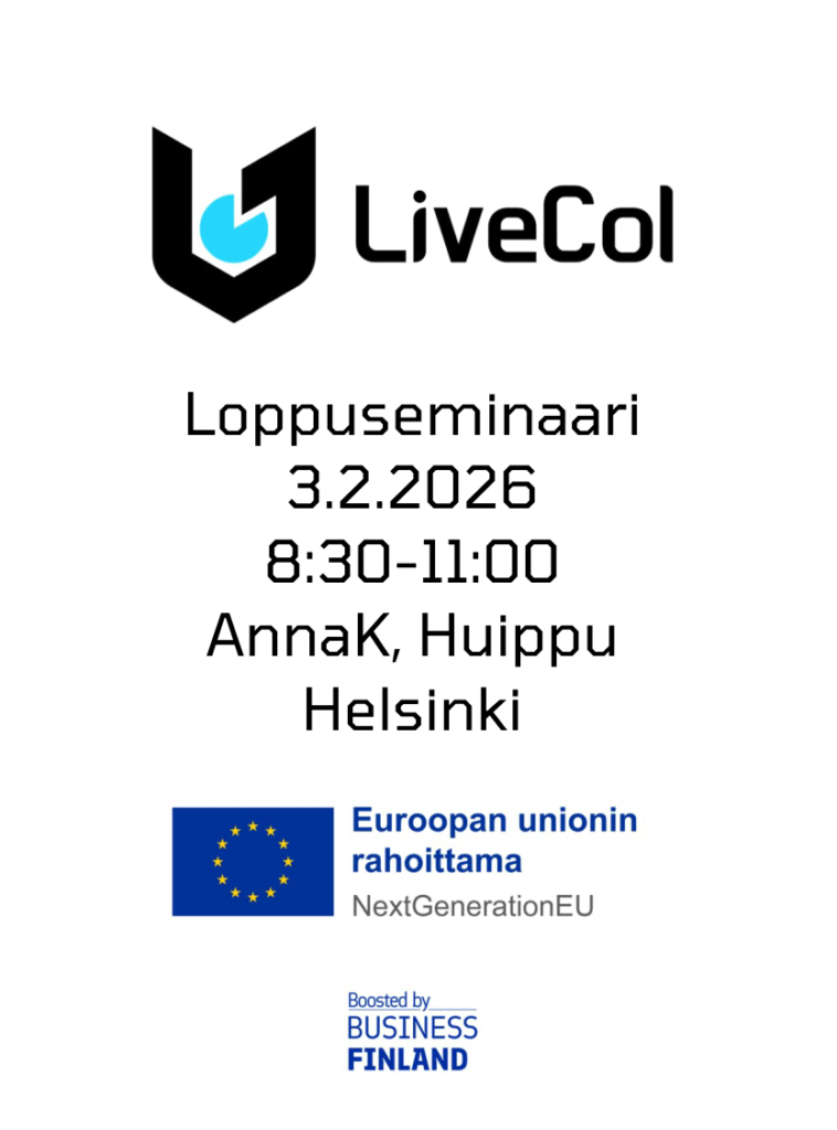 Loppuseminaarissa LiveCol-tutkijat esittelevät tutkimustaan ja saatuja tuloksia. Tule mukaan tiistaina 3.2.2026 kuuntelemaan ja keskustelemaan saavutuksistamme, niiden vaikutuksista KIRA-alalla ja tulevaisuuden mahdollisuuksista!